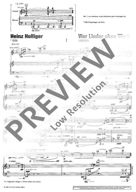 "Songs Without Words" Sheet Music by Heinz Holliger