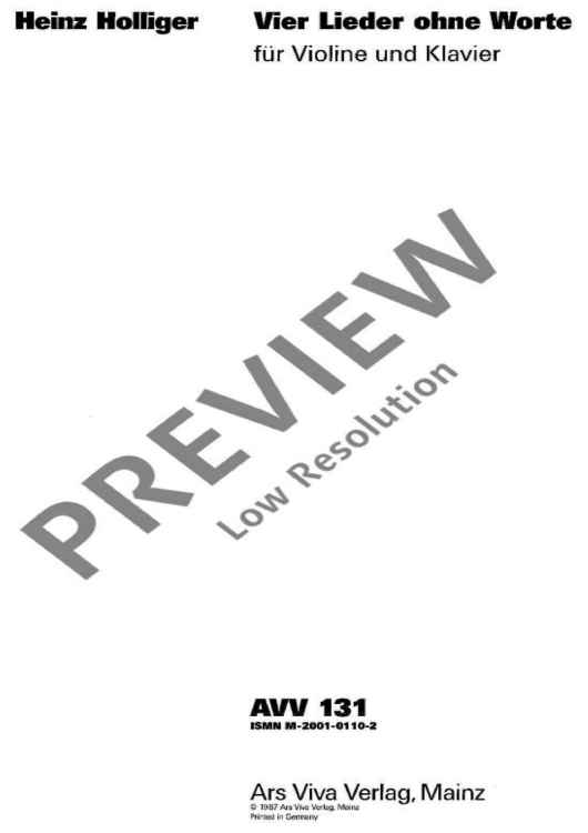 Digital Sheet Music for Songs Without Words by Heinz Holliger scored for Violin And Piano; id:471245
