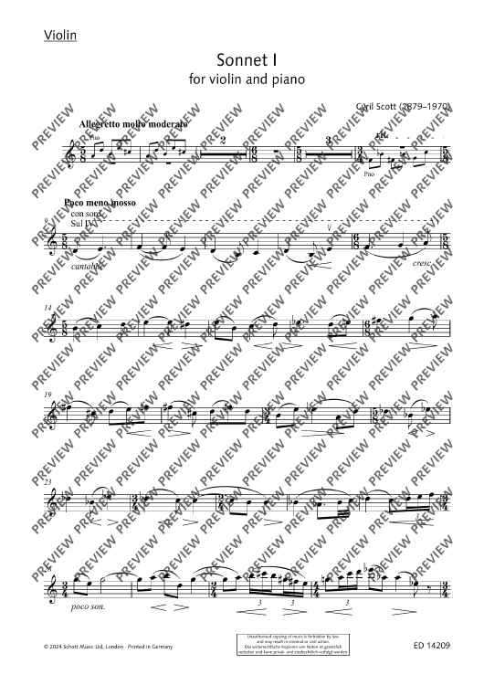 "Sonnet I and II - Score and Parts" Sheet Music by Cyril Scott