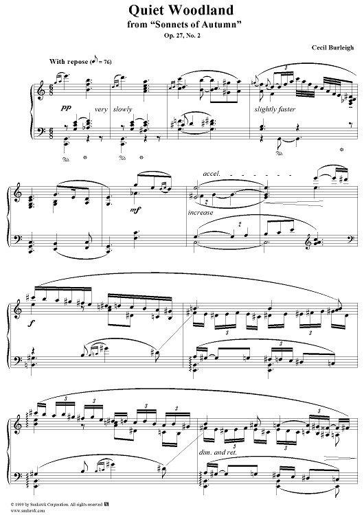 Digital Sheet Music for Sonnets of Autumn, op. 27, no. 2, Quiet Woodland by Cecil Burleigh scored for Piano Solo; id:273713