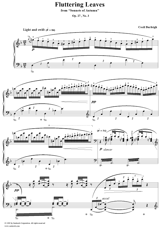 Digital Sheet Music for Sonnets of Autumn, op. 27, no. 3, Fluttering Leaves by Cecil Burleigh scored for Piano Solo; id:273692