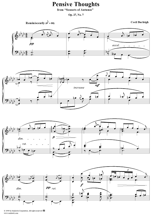 Digital Sheet Music for Sonnets of Autumn, op. 27, no. 7, Pensive Thoughts by Cecil Burleigh scored for Piano Solo; id:273712