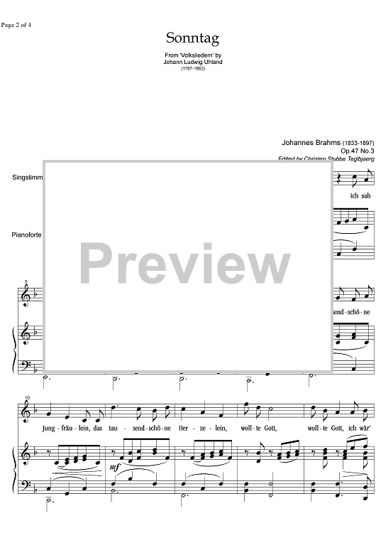 Digital Sheet Music for Sonntag Op.47 No. 3 by , Johannes Brahms scored for Mezzo-soprano or Baritone/Piano; id:334730