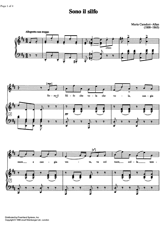 Digital Sheet Music for Sono il silfo by Maria Caradori-Allan scored for Soprano/Piano; id:332554