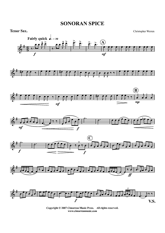 "Sonoran Spice - Tenor Saxophone" Sheet Music by Christopher Warren