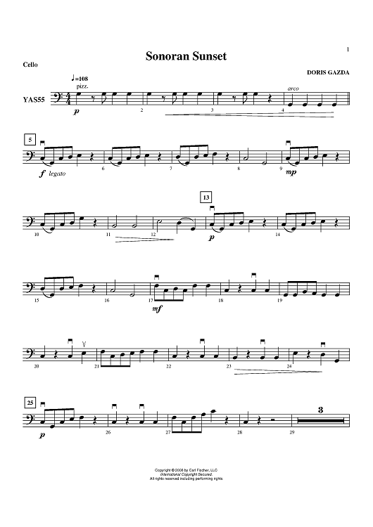 "Sonoran Sunset - Cello" Sheet Music by Doris Gazda
