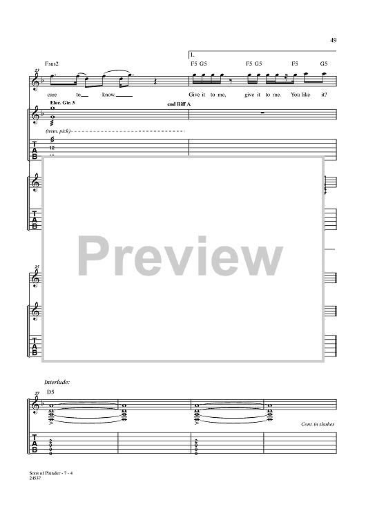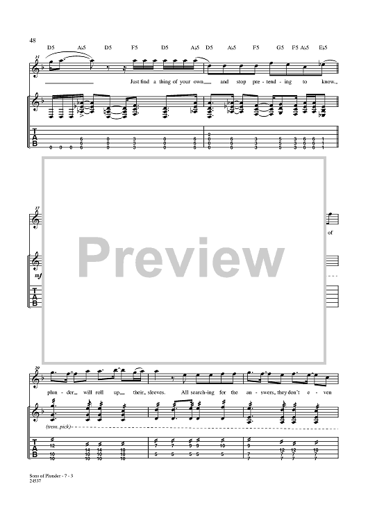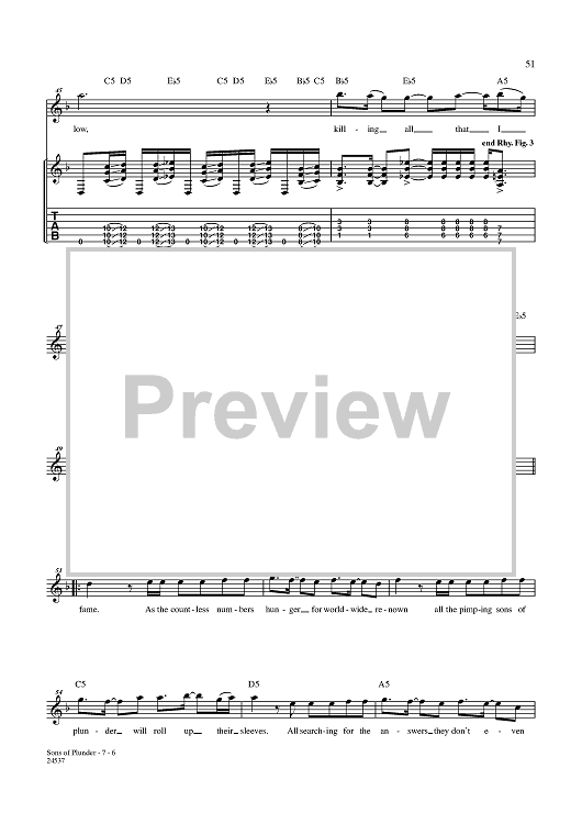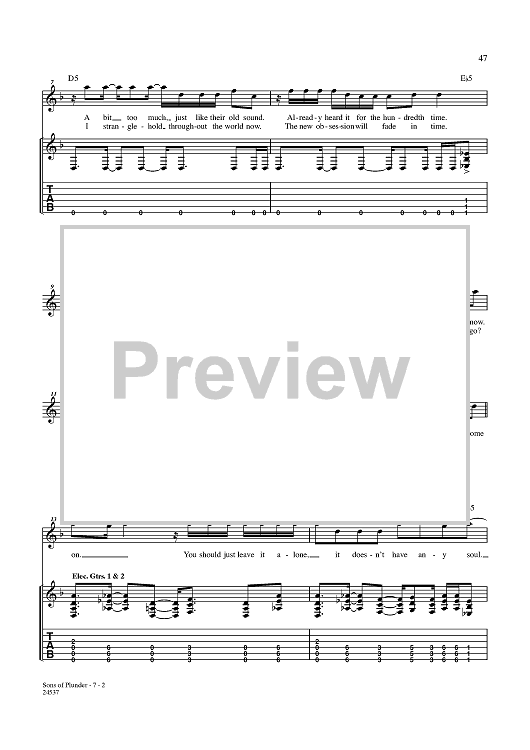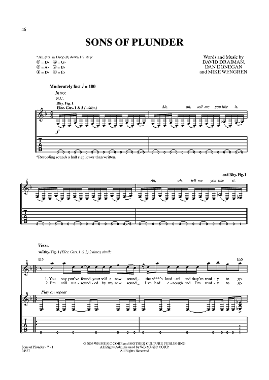 Digital Sheet Music for Sons of Plunder by Disturbed, Mike Wengren, Dan Donegan, David Draiman scored for Guitar Tab/Vocal; id:357795