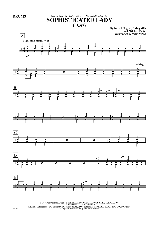 Digital Sheet Music for Sophisticated Lady - Drums by Mitchell Parish, Duke Ellington, Irving Mills, David Berger scored for Jazz Ensemble; id:360064