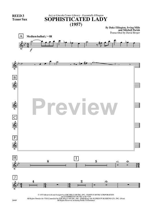 Digital Sheet Music for Sophisticated Lady - Tenor Sax 1 by Mitchell Parish, Duke Ellington, Irving Mills, David Berger scored for Jazz Ensemble; id:360052