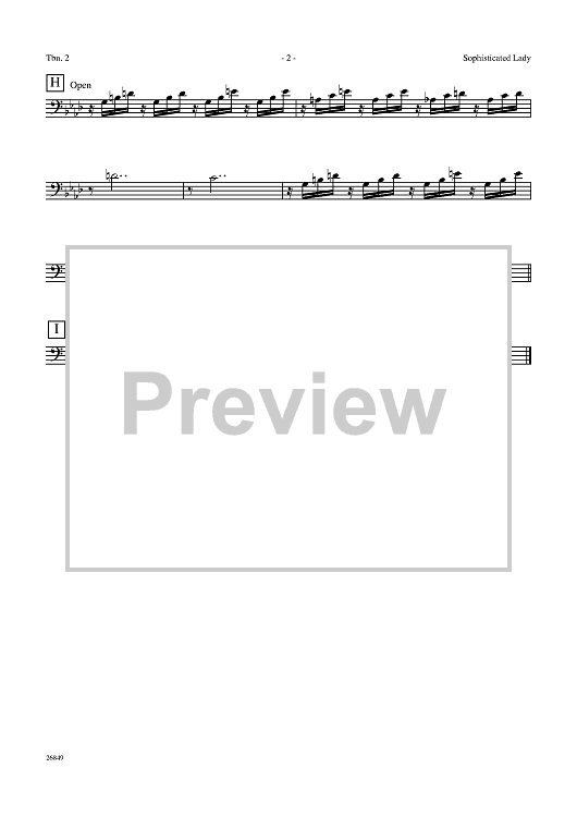 Digital Sheet Music for Sophisticated Lady - Trombone 2 by Mitchell Parish, Duke Ellington, Irving Mills, David Berger scored for Jazz Ensemble; id:360060