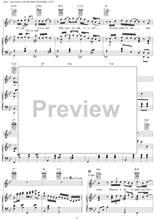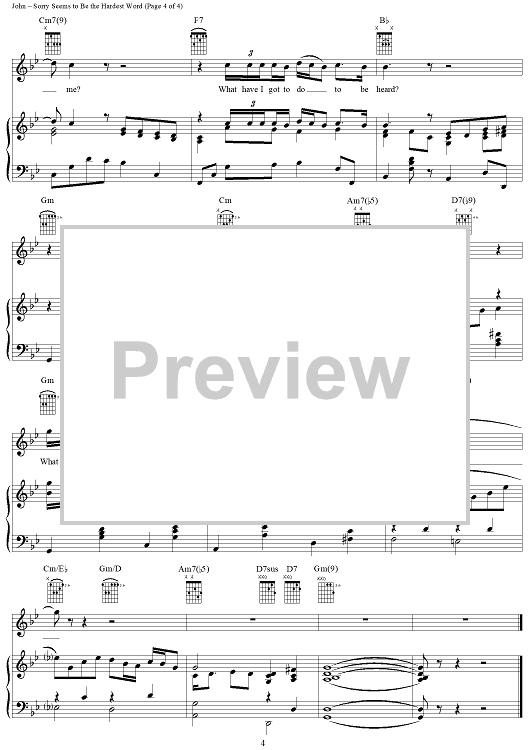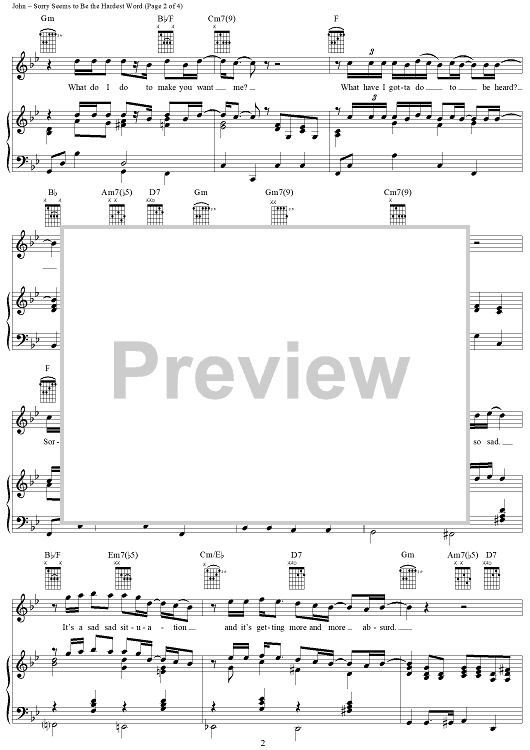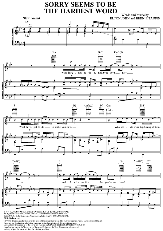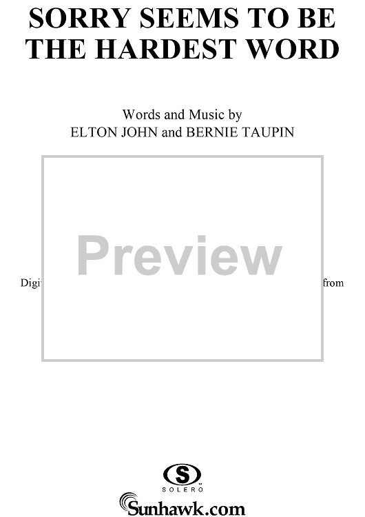 Digital Sheet Music for Sorry Seems to Be the Hardest Word by Elton John, Bernie Taupin scored for Piano/Vocal/Chords; id:286554