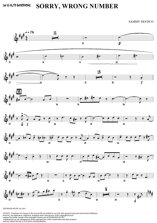 "Sorry, Wrong Number - Alto Saxophone 1" Sheet Music by Sammy Nestico