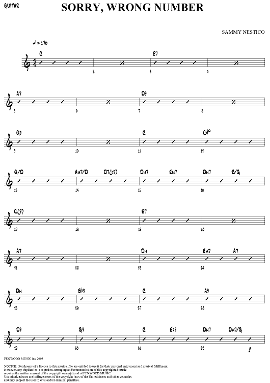 "Sorry, Wrong Number - Guitar" Sheet Music by Sammy Nestico