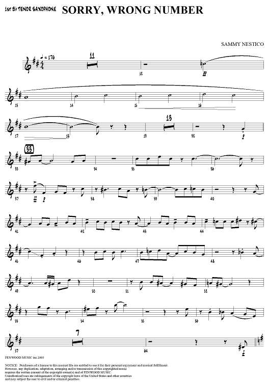 "Sorry, Wrong Number - Tenor Saxophone 1" Sheet Music by Sammy Nestico