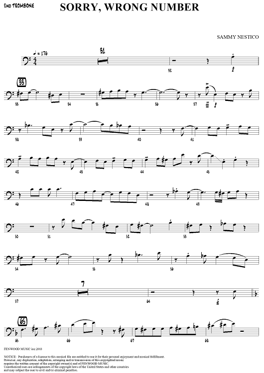 "Sorry, Wrong Number - Trombone 2" Sheet Music by Sammy Nestico