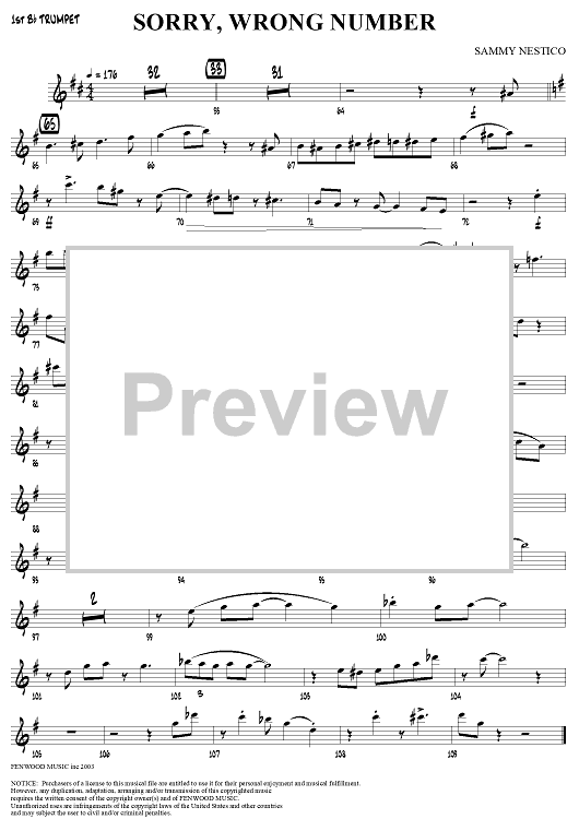 "Sorry, Wrong Number - Trumpet 1" Sheet Music by Sammy Nestico
