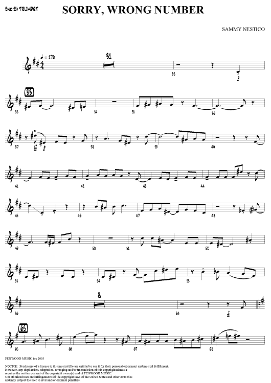 "Sorry, Wrong Number - Trumpet 2" Sheet Music by Sammy Nestico