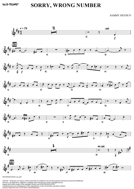 "Sorry, Wrong Number - Trumpet 3" Sheet Music by Sammy Nestico