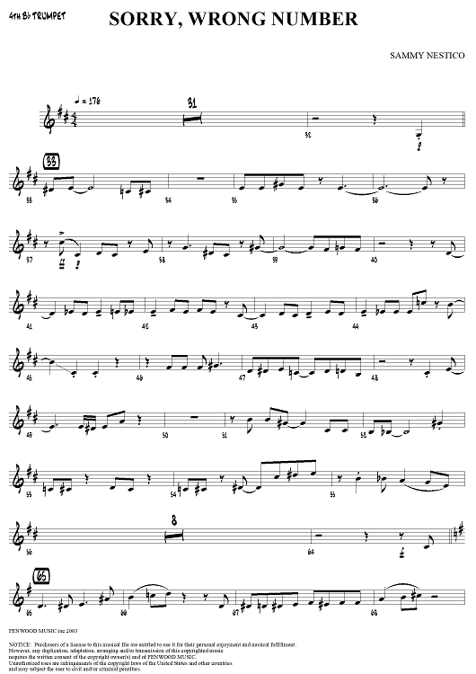 "Sorry, Wrong Number - Trumpet 4" Sheet Music by Sammy Nestico