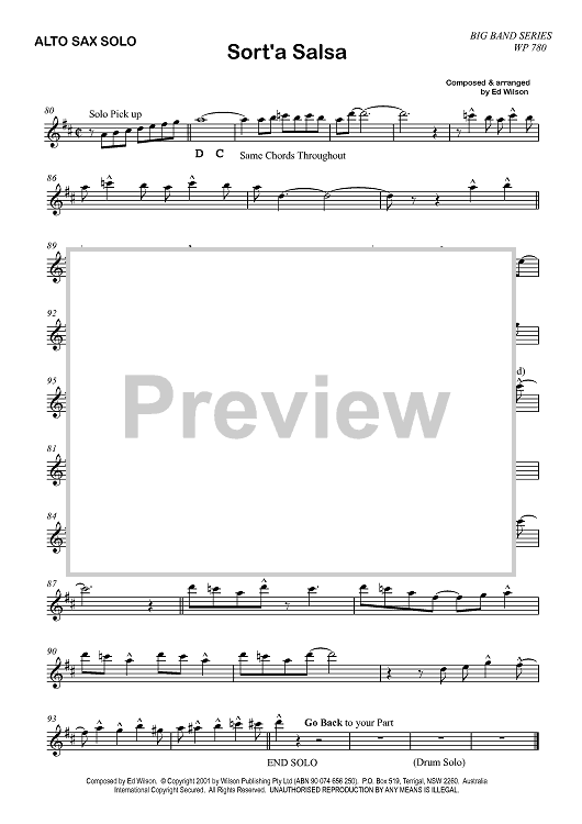 "Sort's Salsa - Alto Sax Solo" Sheet Music by Ed Wilson