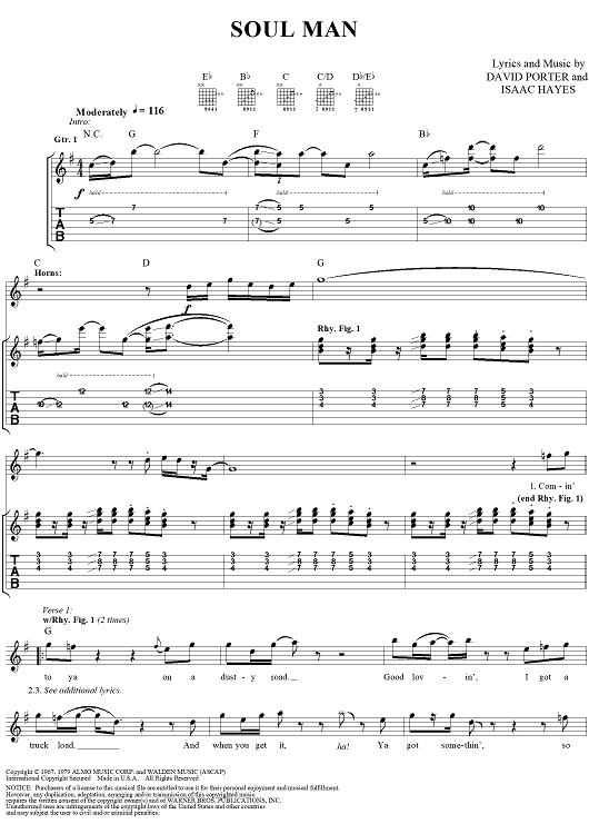 "Soul Man" Sheet Music by Sam and Dave