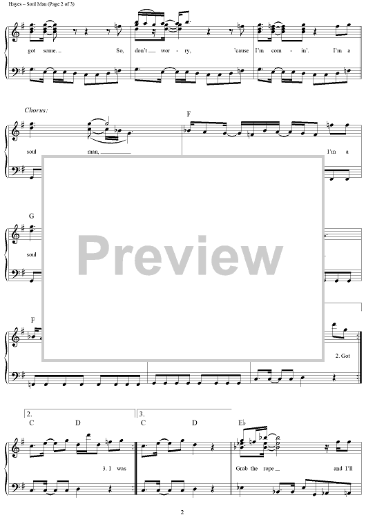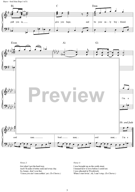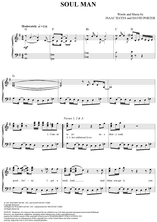 Digital Sheet Music for Soul Man by Isaac Hayes, David Porter, Sam and Dave scored for Piano/Vocal/Chords; id:297043