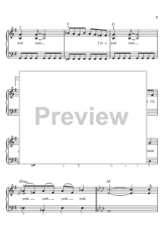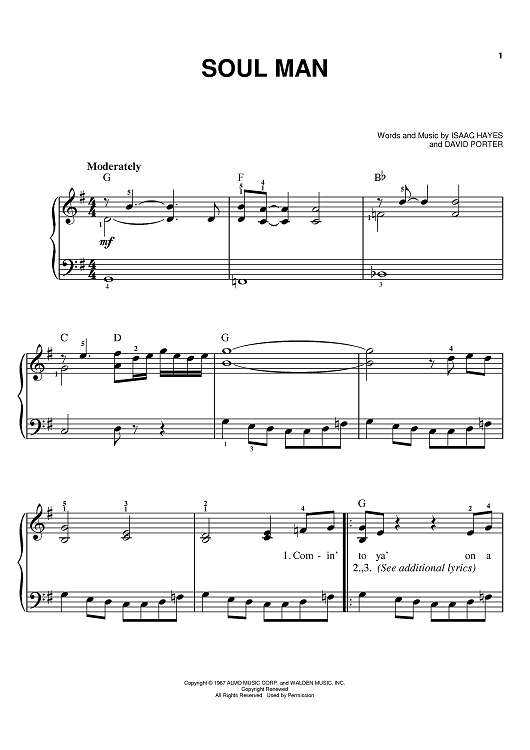 Digital Sheet Music for Soul Man by Isaac Hayes, David Porter, Sam & Dave, The Blues Brothers scored for Easy Piano; id:367452