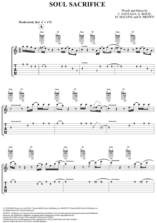 "Soul Sacrifice" Sheet Music by Carlos Santana