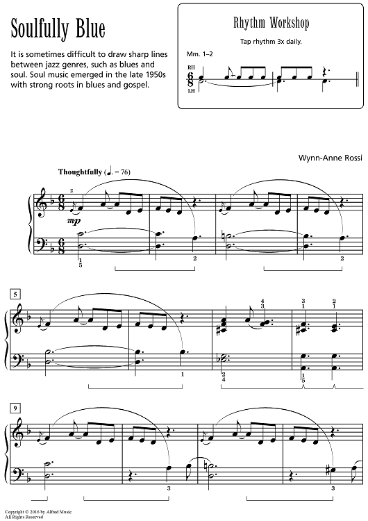 Digital Sheet Music for Soulfully Blue by Wynn-Anne Rossi scored for Piano; id:469552