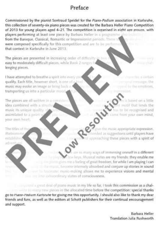 The anthology 'Klangspuren' by Barbara Heller contains 76 works for piano which have been written for the Barbara Heller Piano Competition. Each title has its own personal message: Music can show an image or remind of something, be a short story and put one in a special mood. Arranged in a progressive order, the pieces are divided into two volumes: Vol. 1 contains easy to intermediate pieces, Vol. 2 intermediate to difficult pieces.