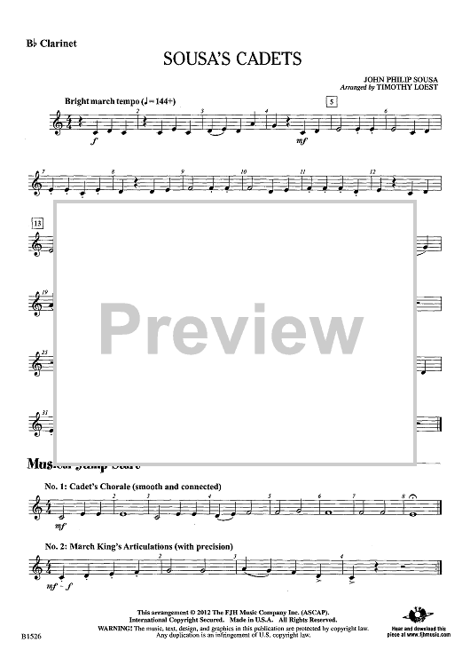 Digital Sheet Music for Sousa's Cadets - Bb Clarinet by John Philip Sousa, Timothy Loest scored for Concert Band; id:440646
