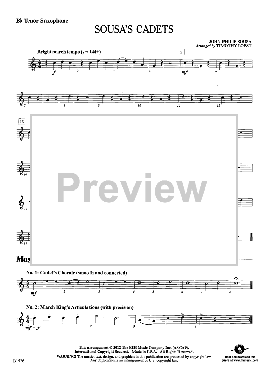 Digital Sheet Music for Sousa's Cadets - Bb Tenor Sax by John Philip Sousa, Timothy Loest scored for Concert Band; id:440649