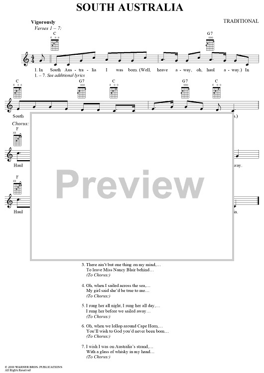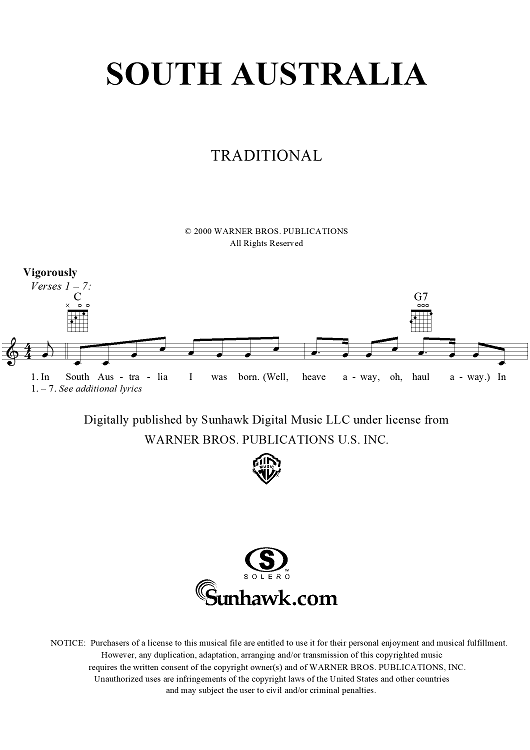 Digital Sheet Music for South Australia by Traditional scored for Lead Sheet; id:292701