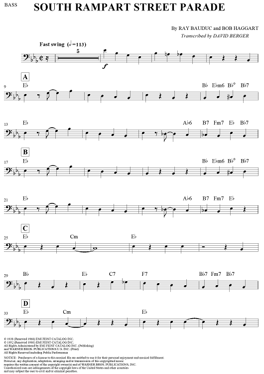 "South Rampart Street Parade - Bass" Sheet Music by Ray Bauduc