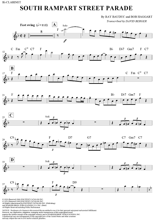 "South Rampart Street Parade - Clarinet in B-flat" Sheet Music by Ray Bauduc