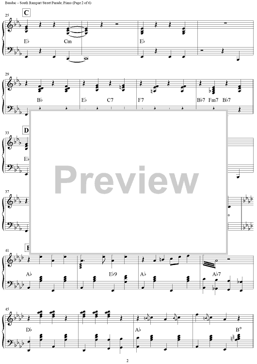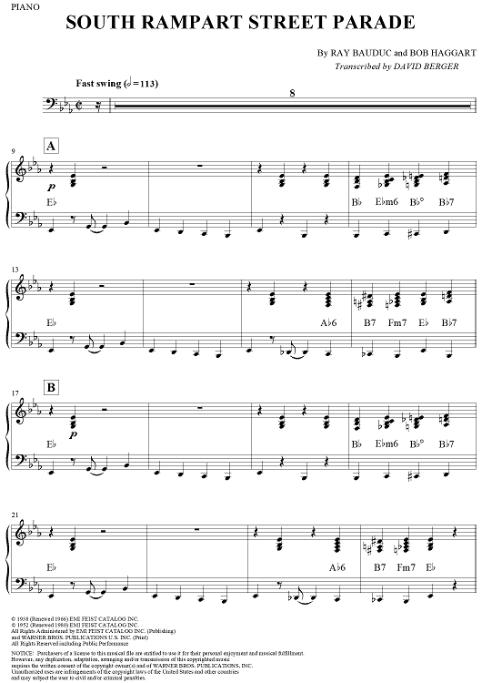 "South Rampart Street Parade - Piano" Sheet Music by Ray Bauduc