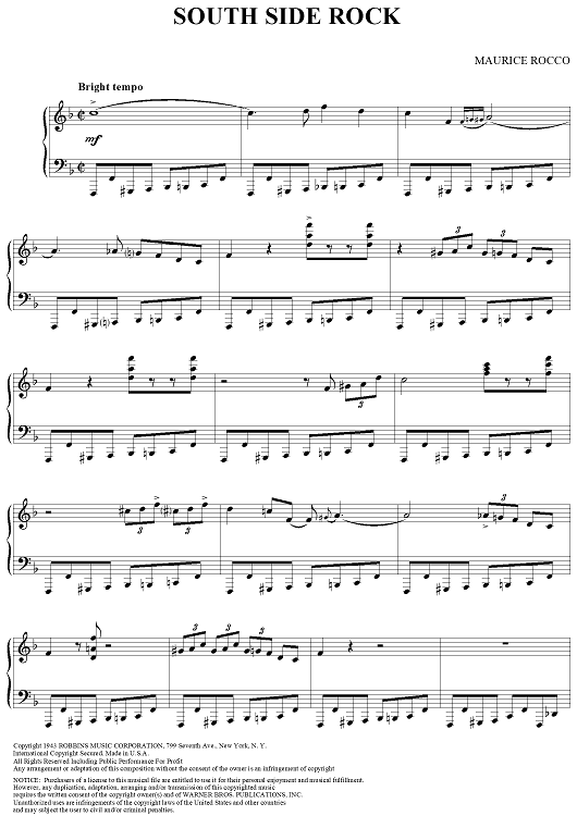 Digital Sheet Music for South Side Rock by Maurice Rocco scored for Piano Solo; id:355036