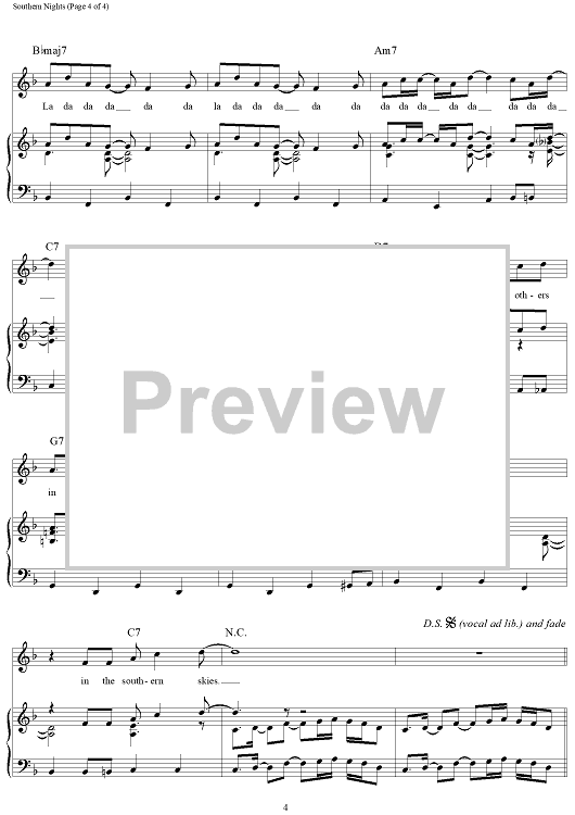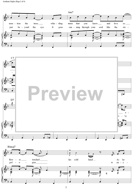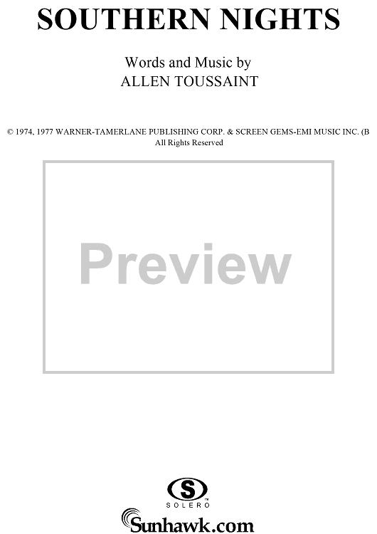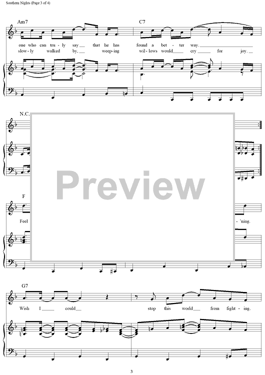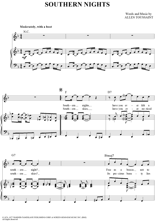 Digital Sheet Music for Southern Nights by Glen Campbell, Allen Toussaint scored for Piano/Vocal/Chords; id:116198