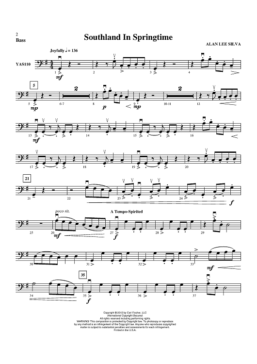 "Southland In Springtime - Bass" Sheet Music by Alan Lee Silva