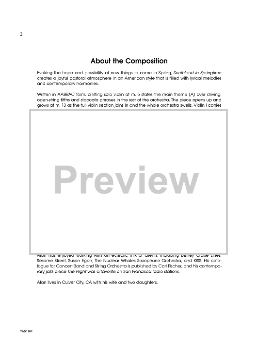 Digital Sheet Music for Southland In Springtime - Score by Alan Lee Silva scored for String Orchestra; id:431869