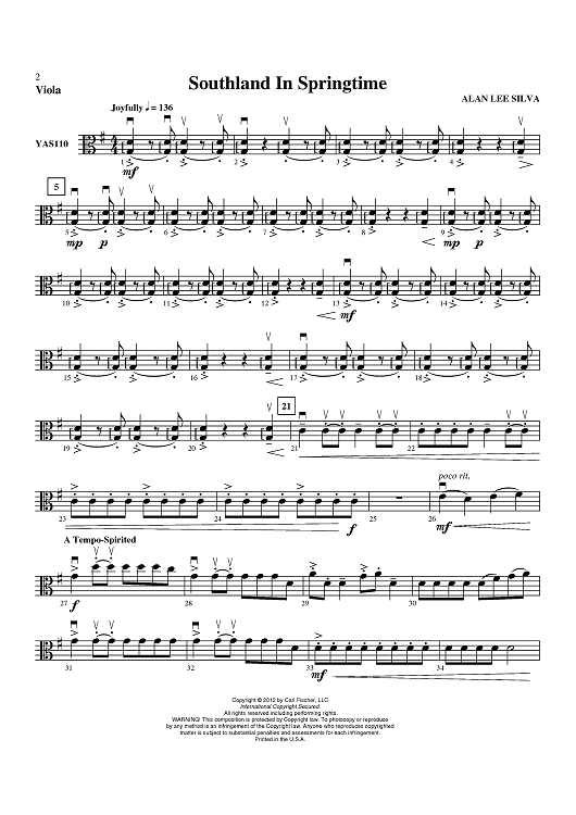 "Southland In Springtime - Viola" Sheet Music by Alan Lee Silva