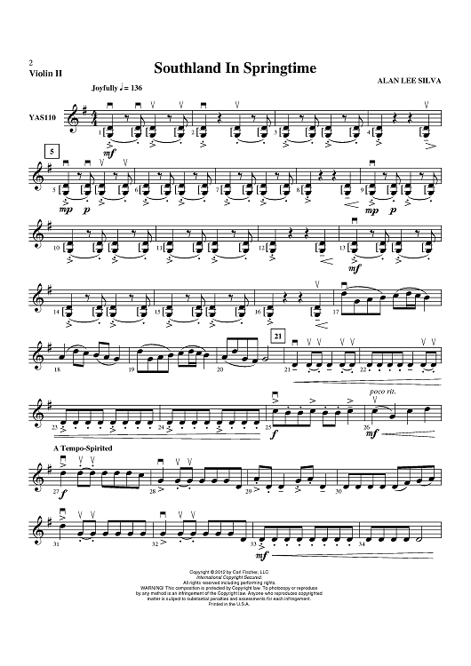 "Southland In Springtime - Violin 2" Sheet Music by Alan Lee Silva