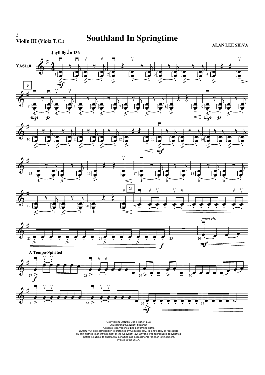 Digital Sheet Music for Southland In Springtime - Violin 3 (Viola T.C.) by Alan Lee Silva scored for String Orchestra; id:431872