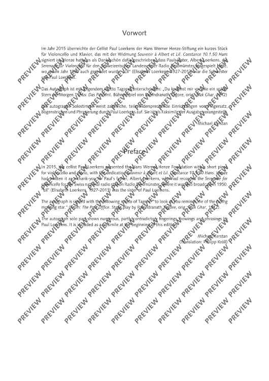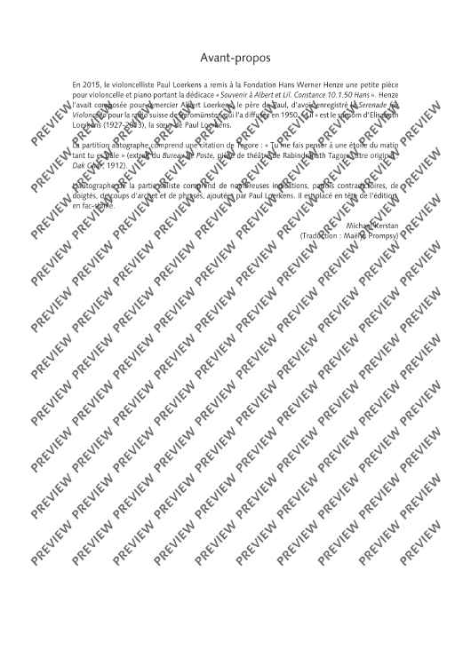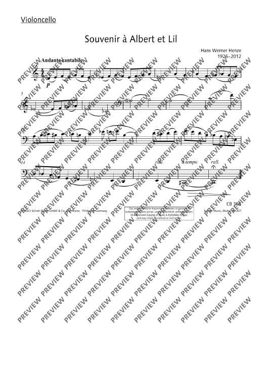 Digital Sheet Music for Souvenir à Albert et Lil - Score and Parts by Hans Werner Henze scored for Cello And Piano; id:499172