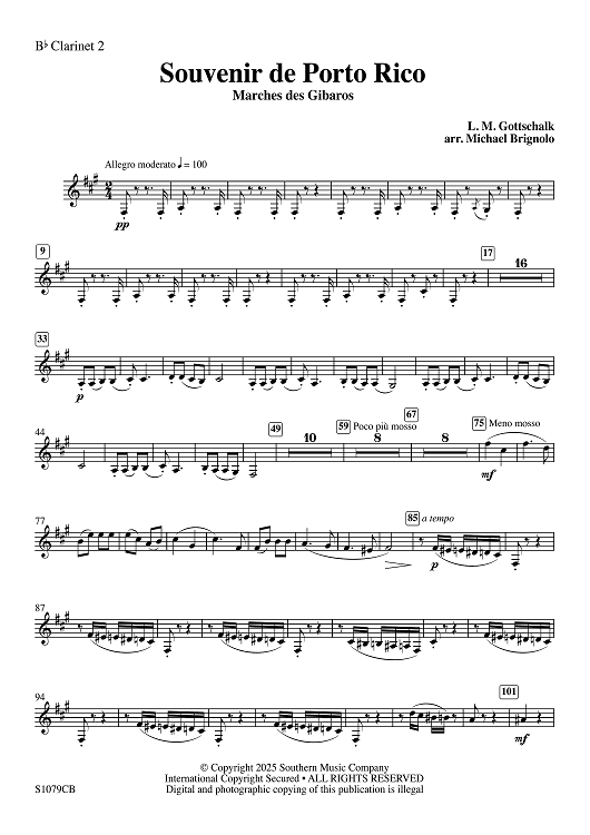 "Souvenir de Porto Rico - Bb Clarinet 2" Sheet Music by Louis Moreau Gottschalk