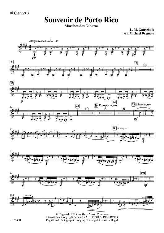 "Souvenir de Porto Rico - Bb Clarinet 3" Sheet Music by Louis Moreau Gottschalk
