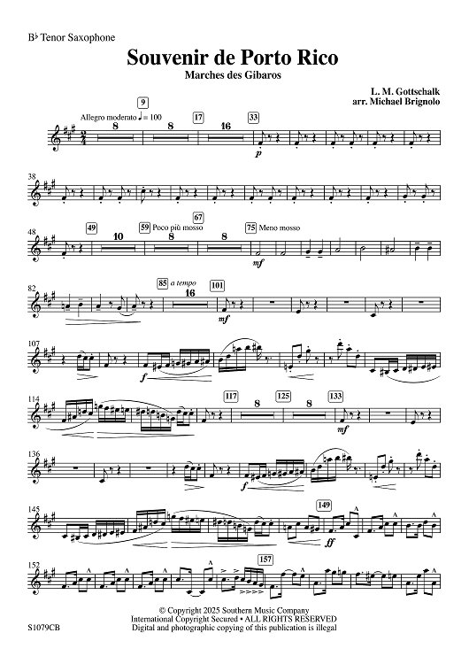 Digital Sheet Music for Souvenir de Porto Rico - Bb Tenor Saxophone by Louis Moreau Gottschalk, Michael Brignolo scored for Concert Band; id:508100