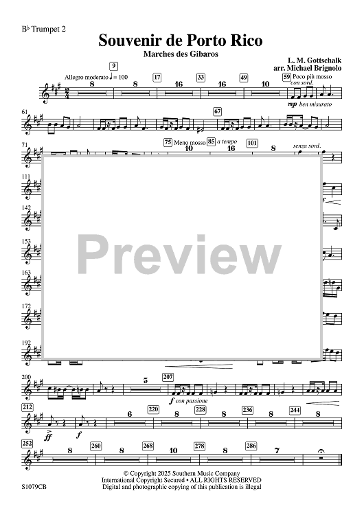 Digital Sheet Music for Souvenir de Porto Rico - Bb Trumpet 2 by Louis Moreau Gottschalk, Michael Brignolo scored for Concert Band; id:508103