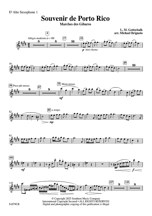 Digital Sheet Music for Souvenir de Porto Rico - Eb Alto Saxophone 1 by Louis Moreau Gottschalk, Michael Brignolo scored for Concert Band; id:508098