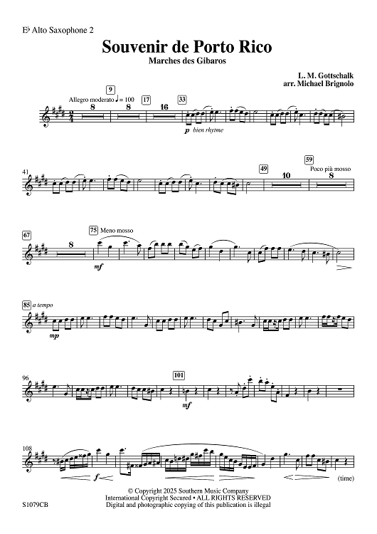 Digital Sheet Music for Souvenir de Porto Rico - Eb Alto Saxophone 2 by Louis Moreau Gottschalk, Michael Brignolo scored for Concert Band; id:508099